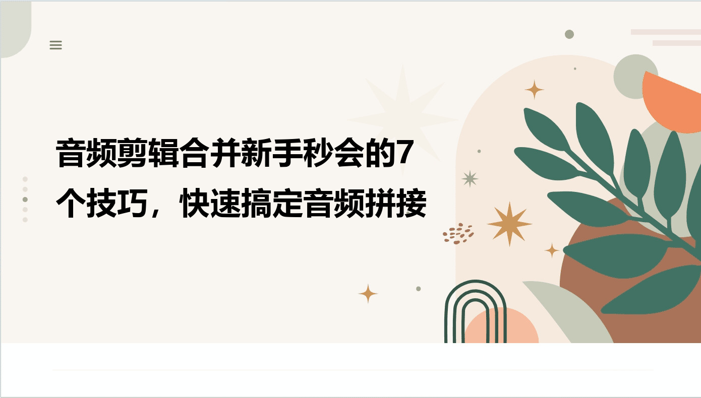 想象一下,刚录完3段重要的会议录音,想合并成一个完整文件发给同事;或者刷到一首超好听的背景音乐,想把自己的翻唱和它混在一起发抖音,结果发现音频格式不对、顺序乱了、导出后音质变渣?是不是瞬间头大?别慌!今天我就把压箱底的7个音频合并方法掏出来,让你不管是电脑小白还是手机达人,都能找到适合自己的方法。