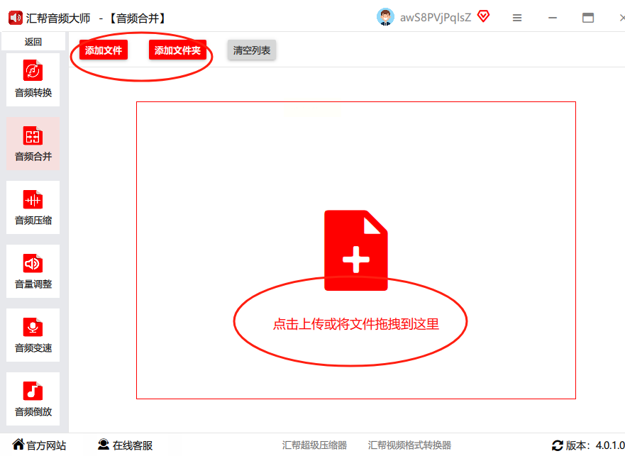 2. 上传文件:点“选择文件”,从电脑里选要合并的音频,一次最多传200MB的单个文件(大文件会慢)。