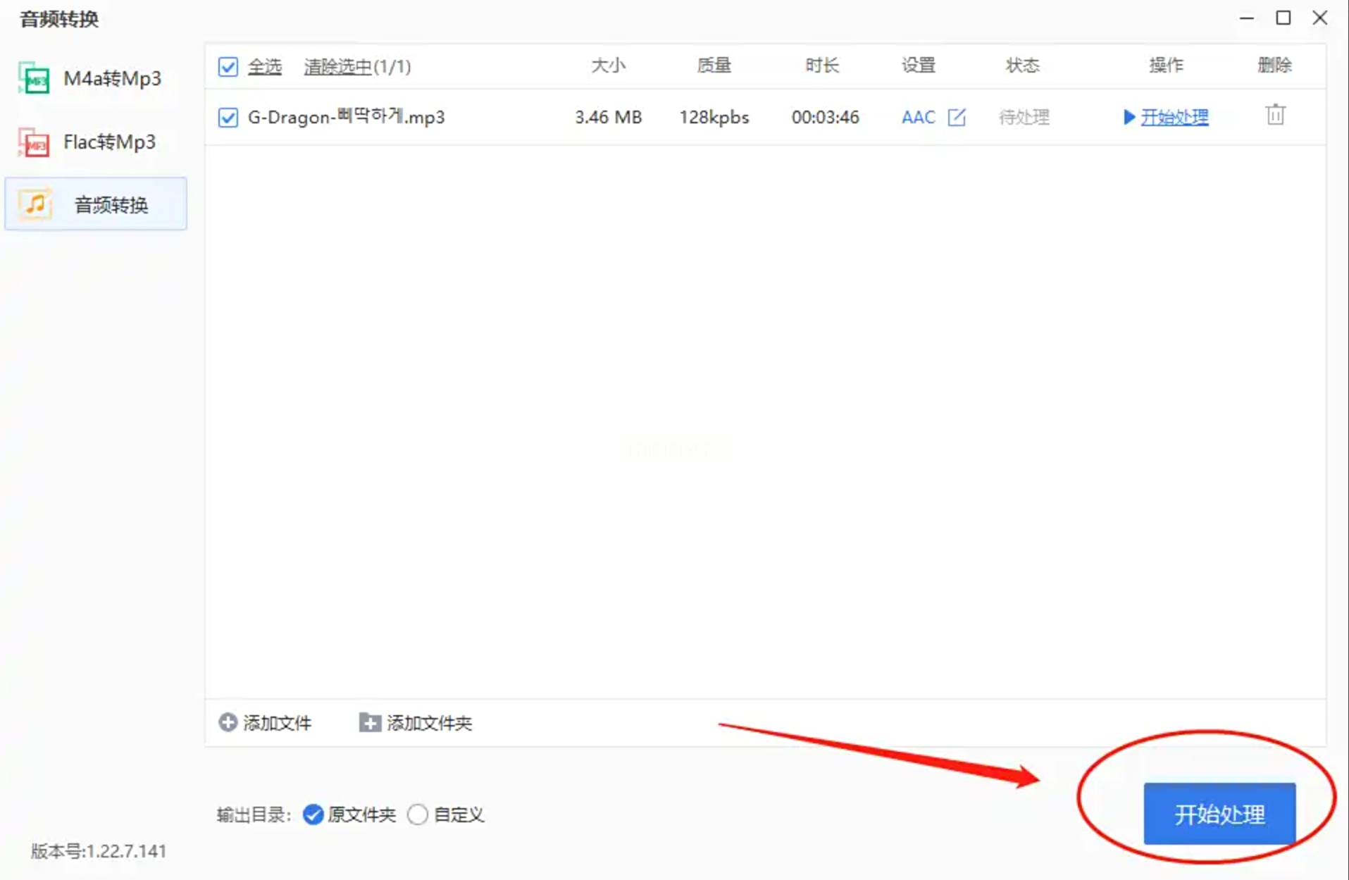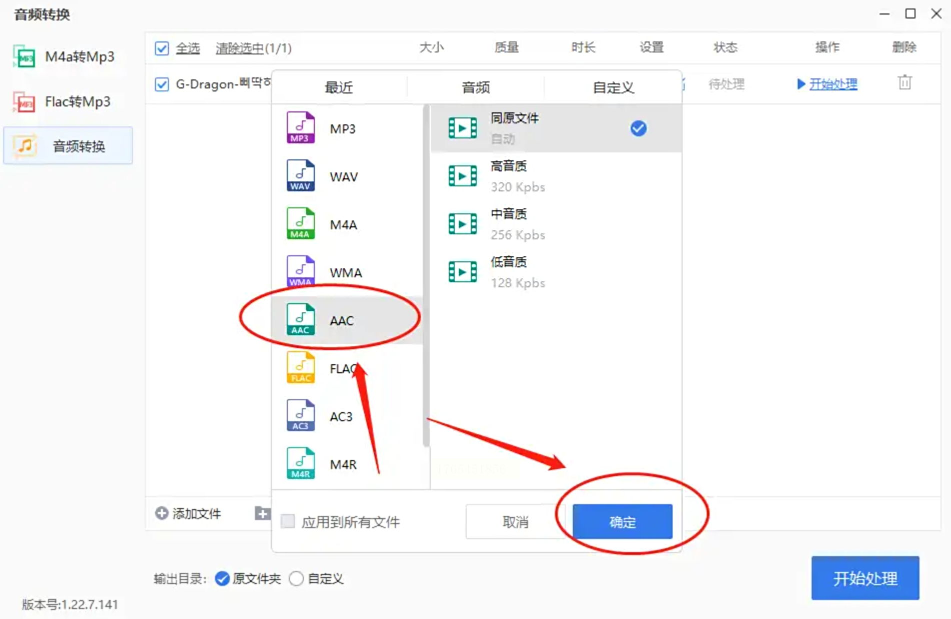 在音频转换页面,点击“添加文件”按钮,从电脑中选择要转换的MP3文件。添加成功后,在界面中找到“转换设置”或“输出格式”选项,点击后从列表中选择“AAC”格式。若有其他参数如采样率等,可依据需要调整,完成后点击“确定”保存设置。