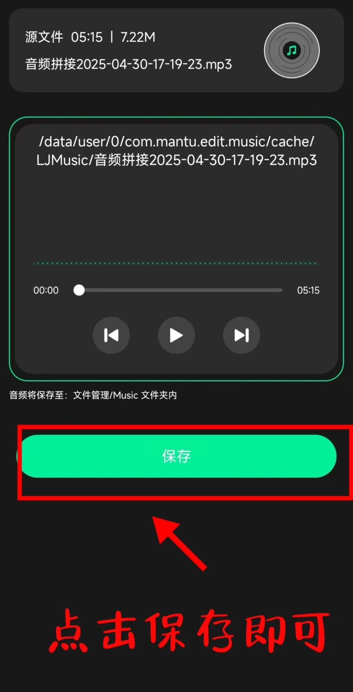 5. 一键生成合并文件:顺序调整好之后,点击右上角的【确定】、【合成】或类似的完成按钮。APP会自动开始处理,处理完成后,通常会提示你保存。保存时,记得选一个容易找到的目录,或者直接保存到手机音乐库。