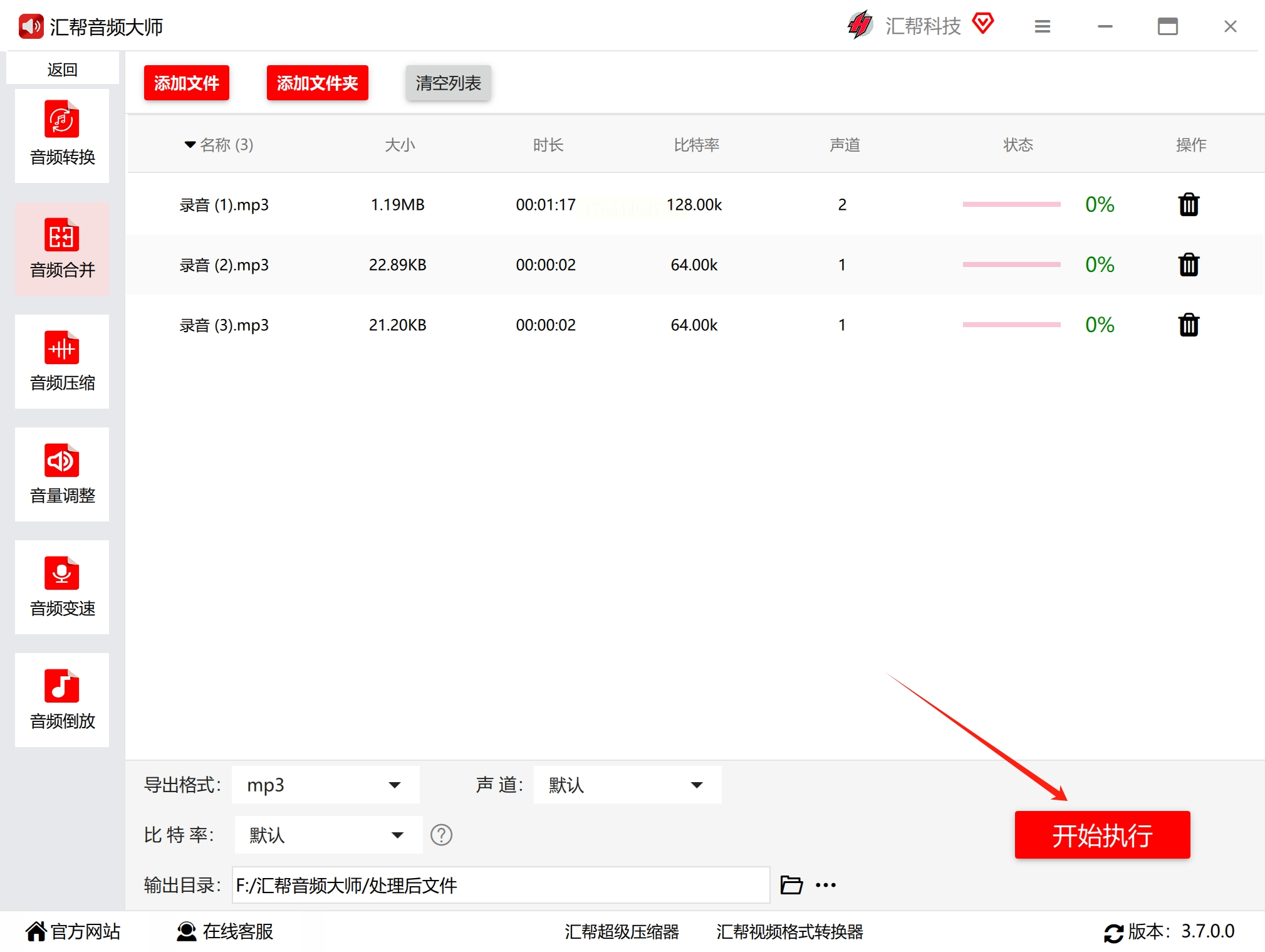 方法一:借助“汇帮音频大师”帮我们把mp3文件合并在一起