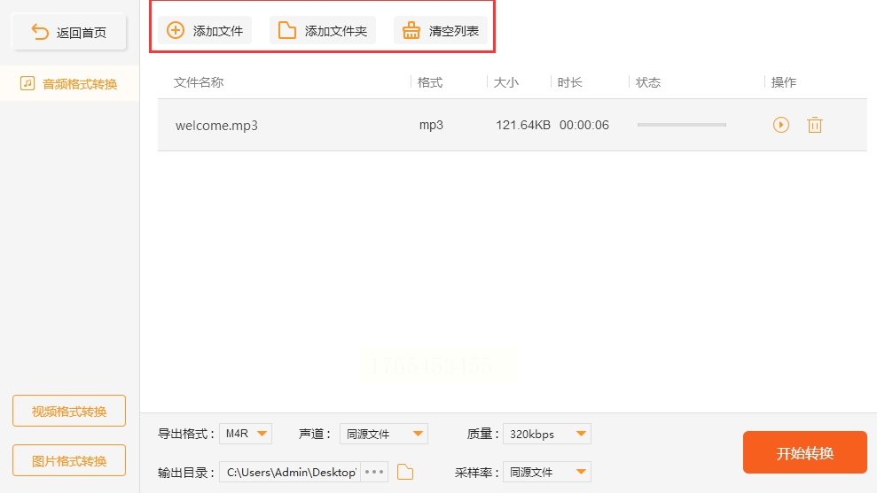 2. 导入音频文件:你可以通过点击 【添加文件】 来逐个选择MP3,或者点击 【添加文件夹】 来一次性导入某个目录下的所有MP3文件。