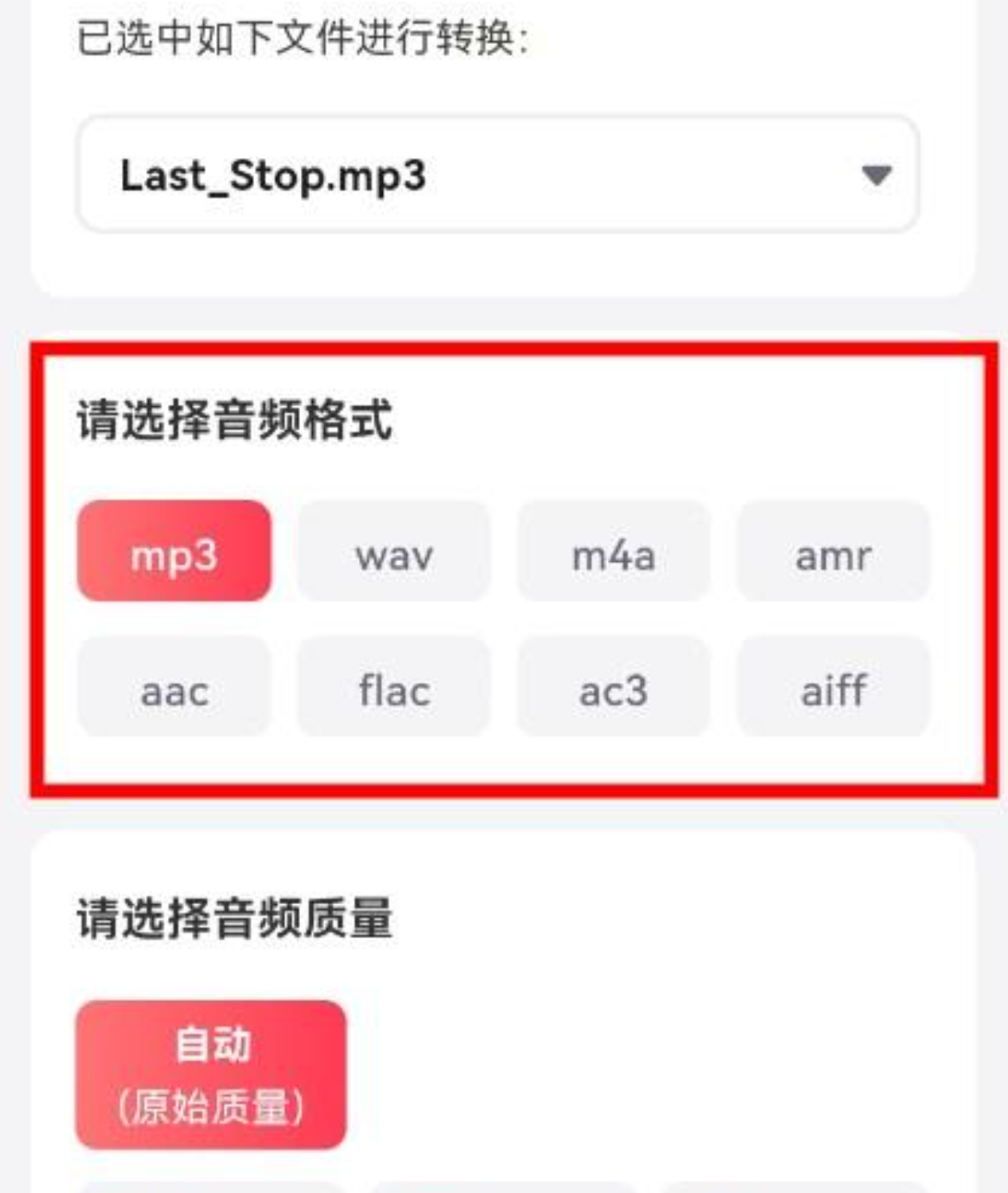 点格式列表,找到“MP3”点一下!这里可以调比特率(320kbps音质最高,适合追求无损的你;128kbps够用就好,省空间),还有采样率默认44.1kHz就行。设置完直接点“开始转换”,等几秒就好~
