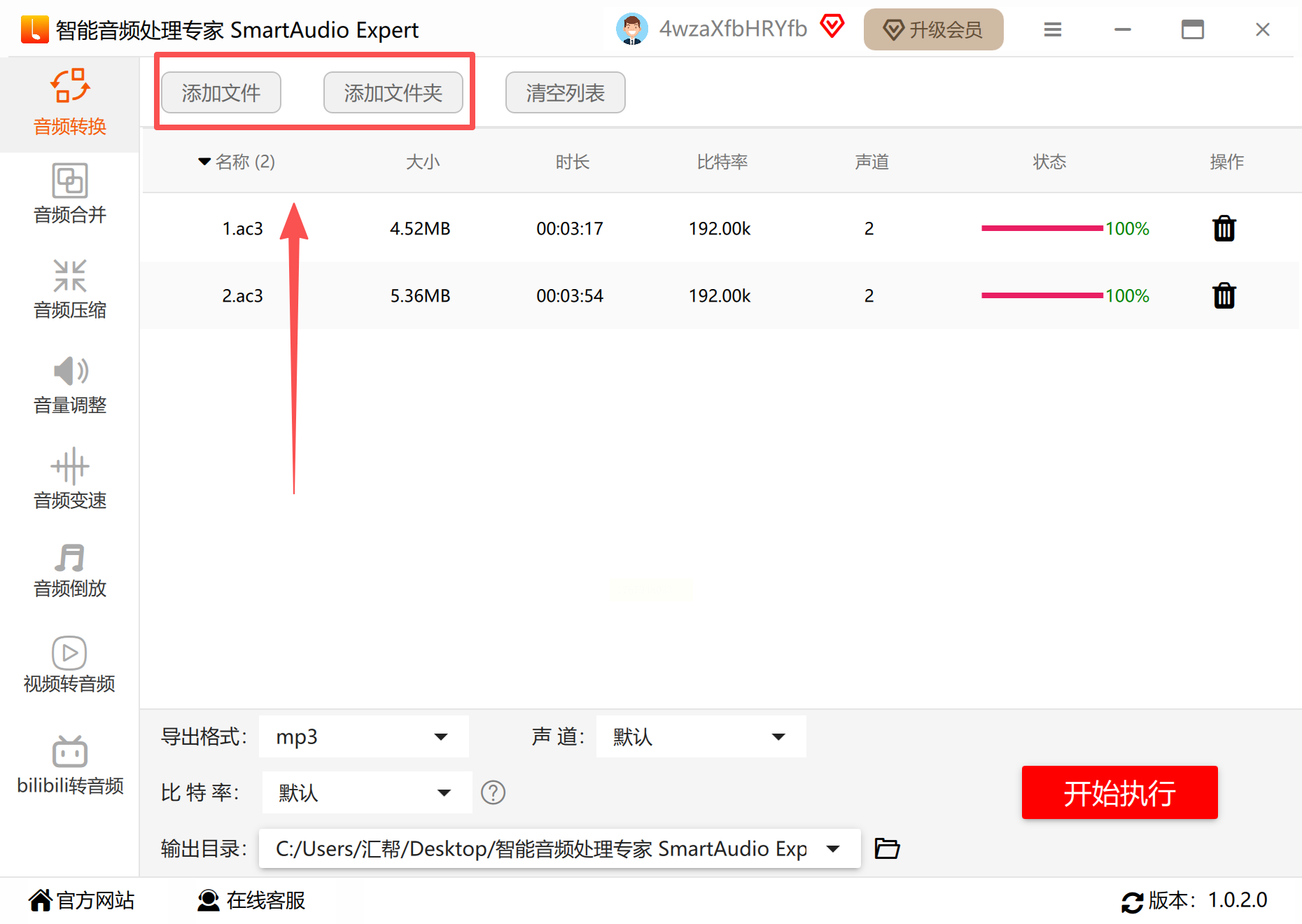 2. 点击“添加文件”或直接拖拽AC3文件到界面中,支持同时导入多个文件。
