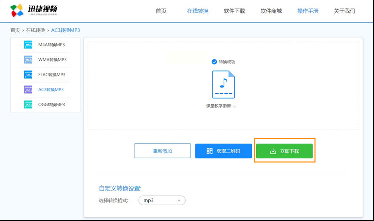 4. 点击“开始转换”,系统会自动处理文件,转换完成后点击“下载”即可保存MP3文件。