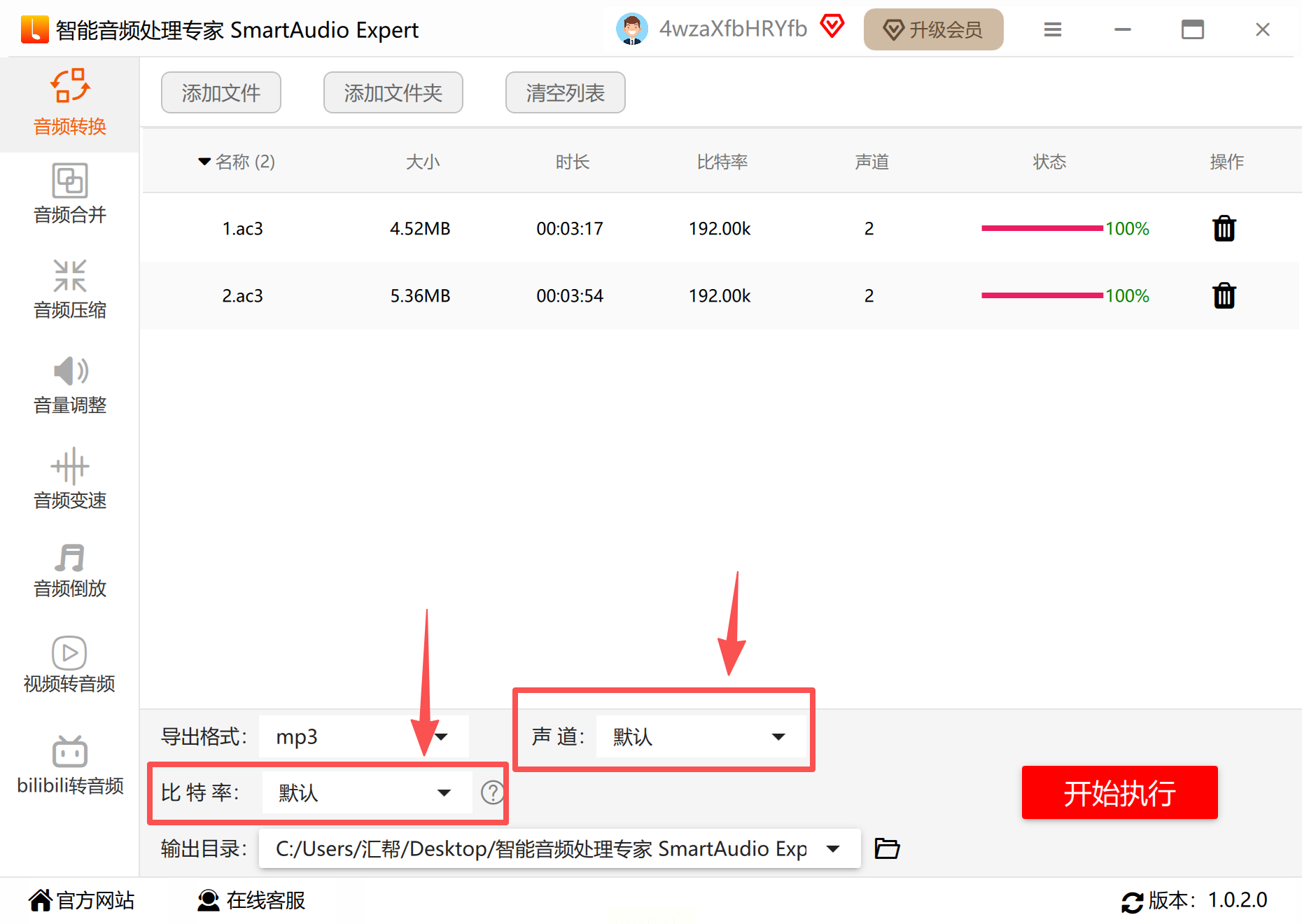 3. 调整比特率(推荐192kbps以上,平衡音质与文件大小),设置输出路径后点击“开始转换”。