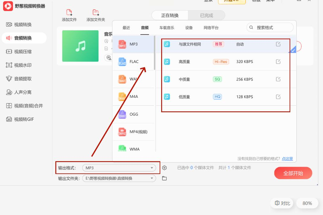 - 比特率设置:数值越高音质越接近原始文件,建议320kbps为常用选项