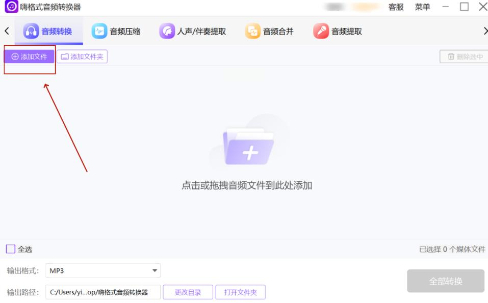 步骤二: 点击"添加文件"按钮,支持单文件导入或批量拖拽多个音频文件,界面实时显示上传进度。