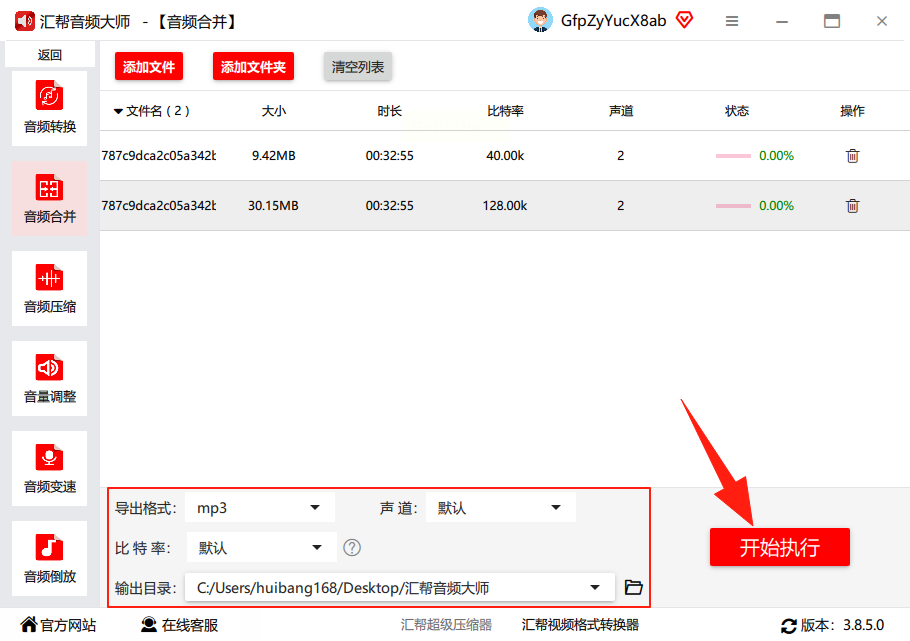 步骤四:全部设置完成后,点击“开始执行”按钮。软件会自动备份你的原始文件,然后生成合并后的新音频。