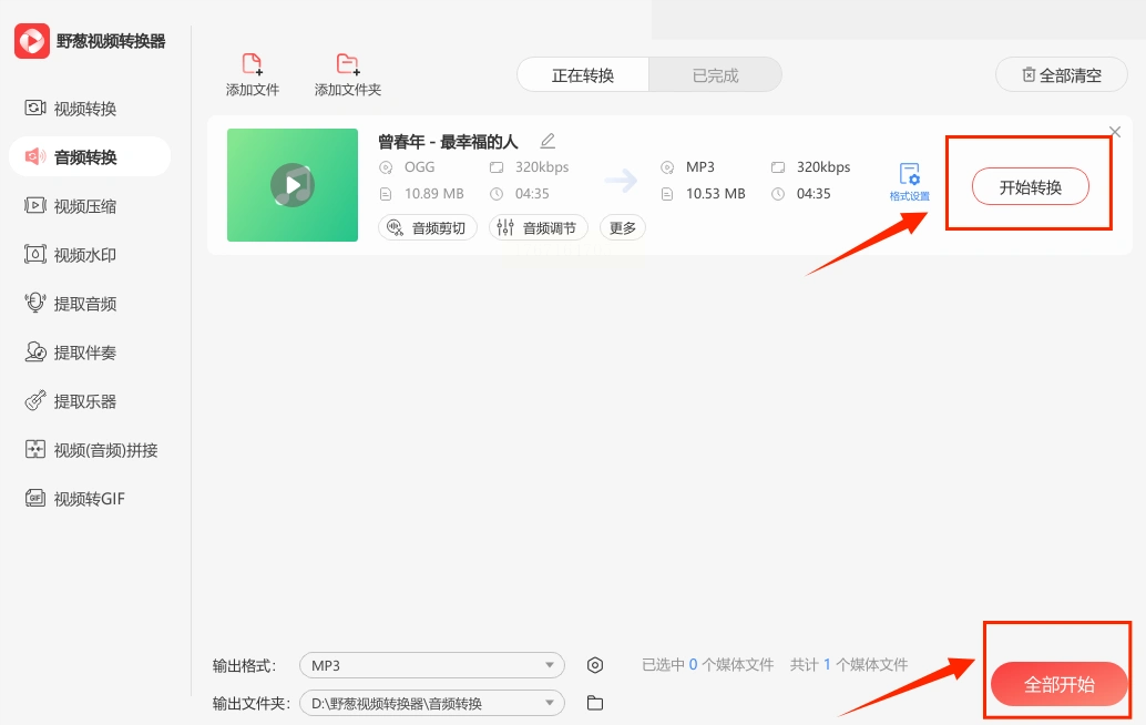 确认设置无误后点击「开始转换」,进度条会实时显示转换状态。完成后点击「打开文件夹」,系统会直接定位到输出文件,方便快速检查转换效果。
