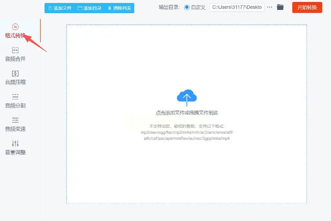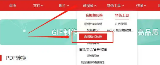找到"音频转换"选项,点击进入音频格式转换界面。