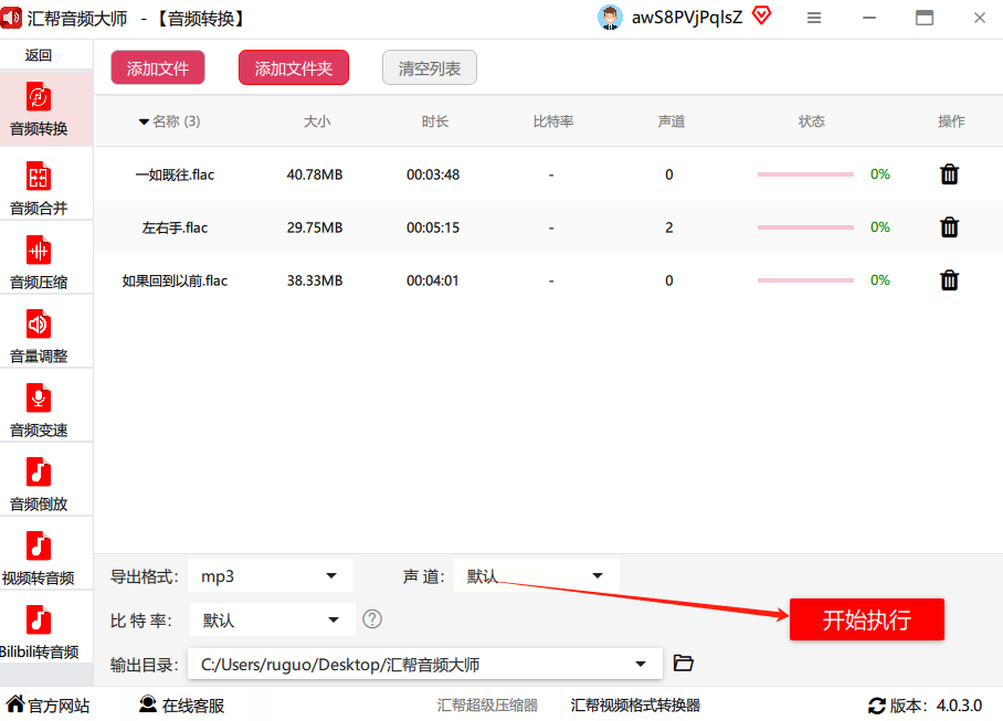 确认所有设置无误后,点击右下角的"开始执行"按钮。