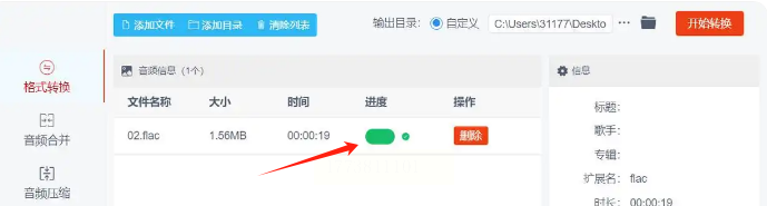 此时会弹出进度窗口,显示每个文件的转换进度。转换速度取决于文件大小,一般一首5分钟的FLAC文件转换约需10-30秒。