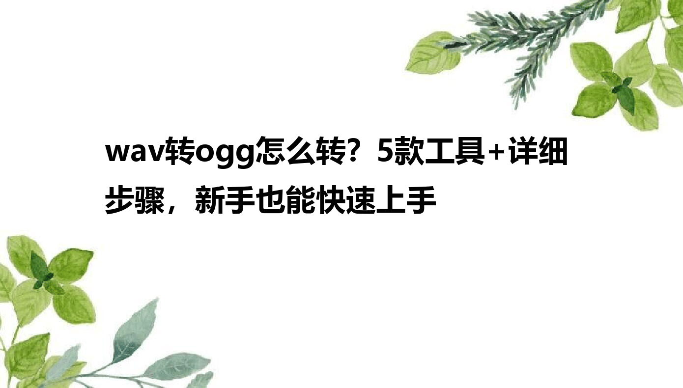 通过以上5种方案的详细解读,相信您对如何将WAV转换为OGG格式已经有了清晰的认识。选择哪一款,最终取决于您的具体需求:是看重速度,是要求功能全面,还是需要进行深度编辑。希望这篇教程能切实地帮助您解决音频格式转换中遇到的实际问题,让您能够更自如地管理和享受自己的数字音频生活。