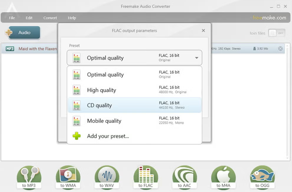 如果您在寻找一款轻量级且完全免费的转换工具,Freemake Audio Converter是一个不错的备选方案。它的界面设计极其简洁,几乎没有任何学习成本。