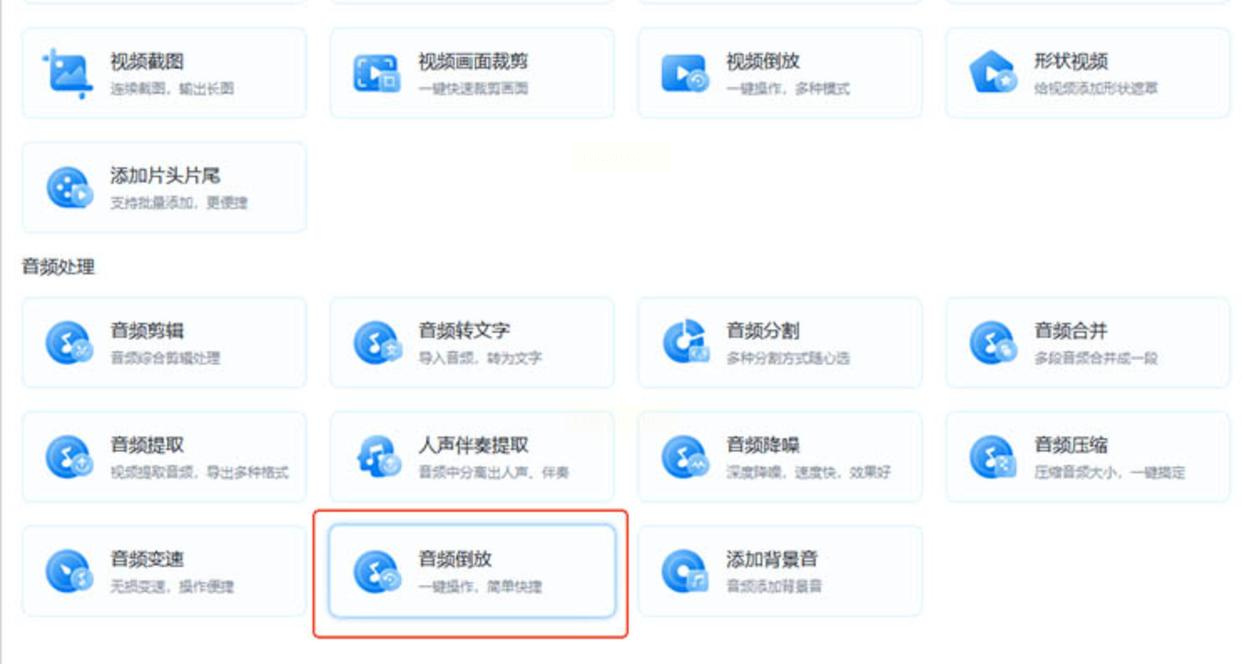 第一步,打开软件,在主界面找到“音频倒放”这个选项,点进去。这个模块设计得很直观,一眼就能看到所有功能,不用到处找设置。