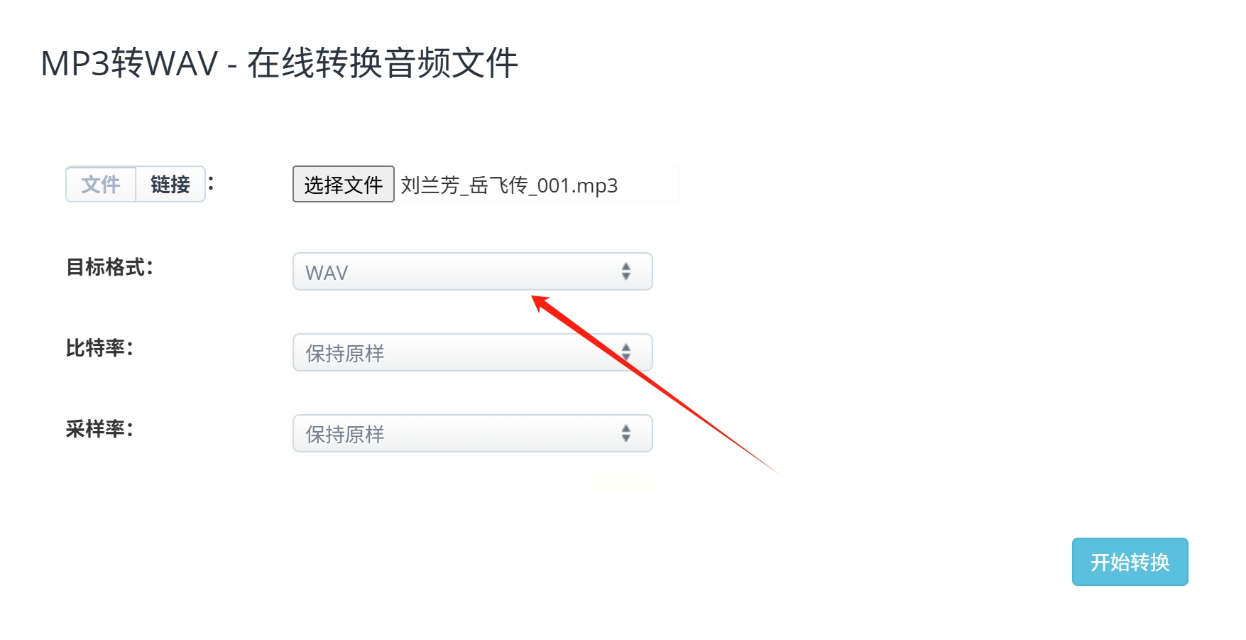 上传完成后,会显示格式选项。找到“输出格式”或“Convert to”下拉菜单,选择你想要的目标格式,比如WAV、FLAC、AAC等。有些网站还会提供音质参数设置,如比特率、采样率等。