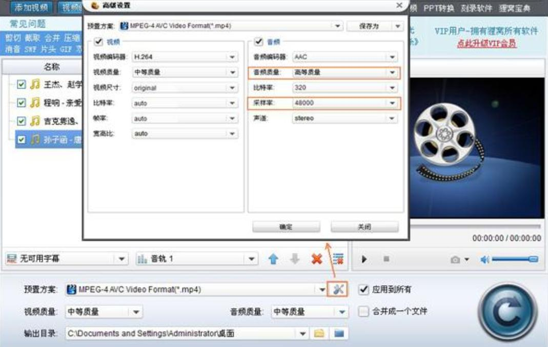 接下来点击“高级设置”进入参数调整界面。建议把音频质量调到最高,采样率选48000Hz。别小看这些设置,它们直接关系到转换后视频的听觉效果。