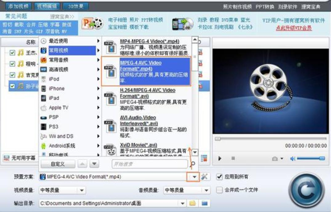 在底部设置区域,将输出格式选为MP4。这里要注意,有些软件可能会把视频格式选项放在二级菜单里,仔细找找就能找到。
