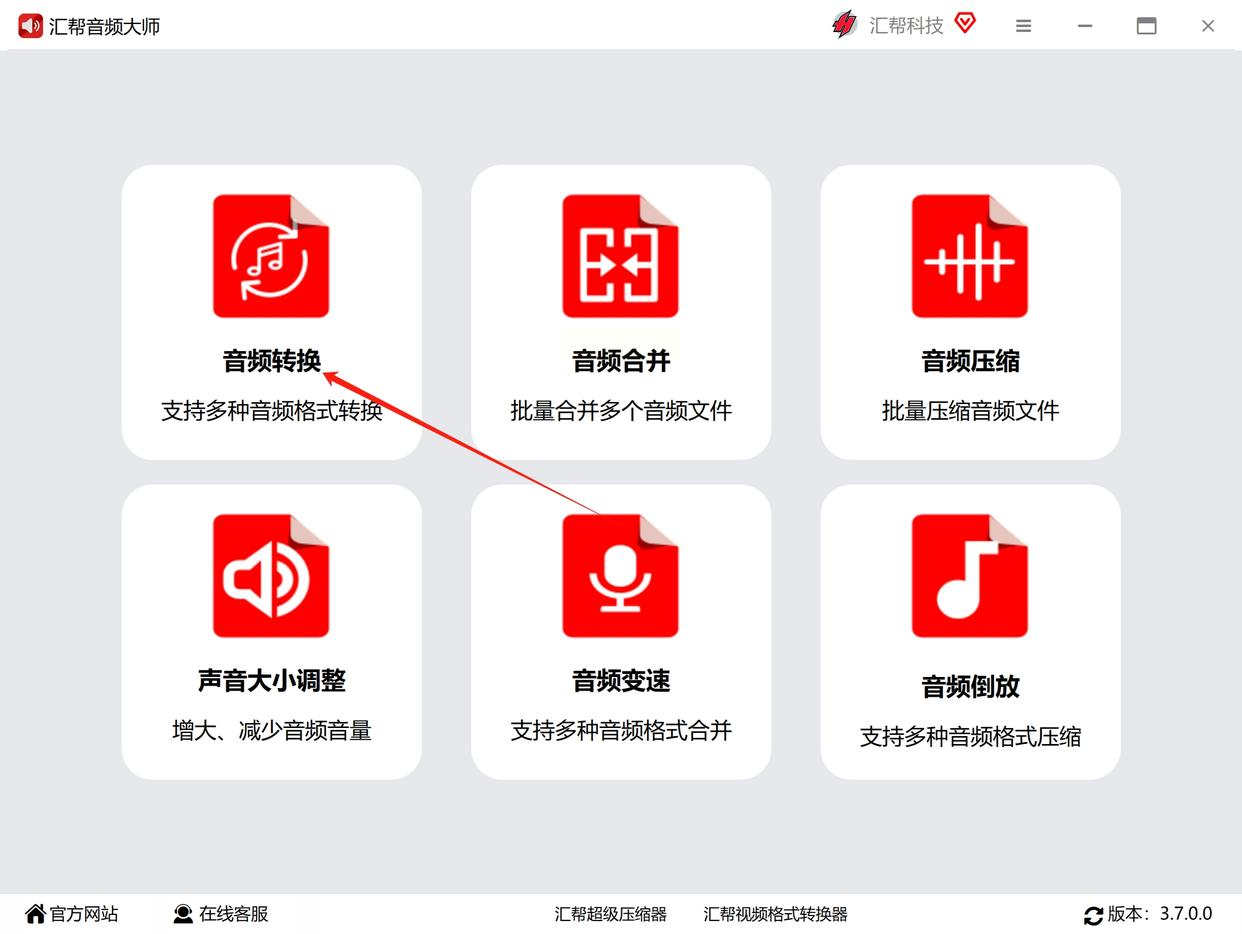 启动软件后,在功能列表里选择“音频转换”选项。这个界面设计得很直观,所有功能一目了然。