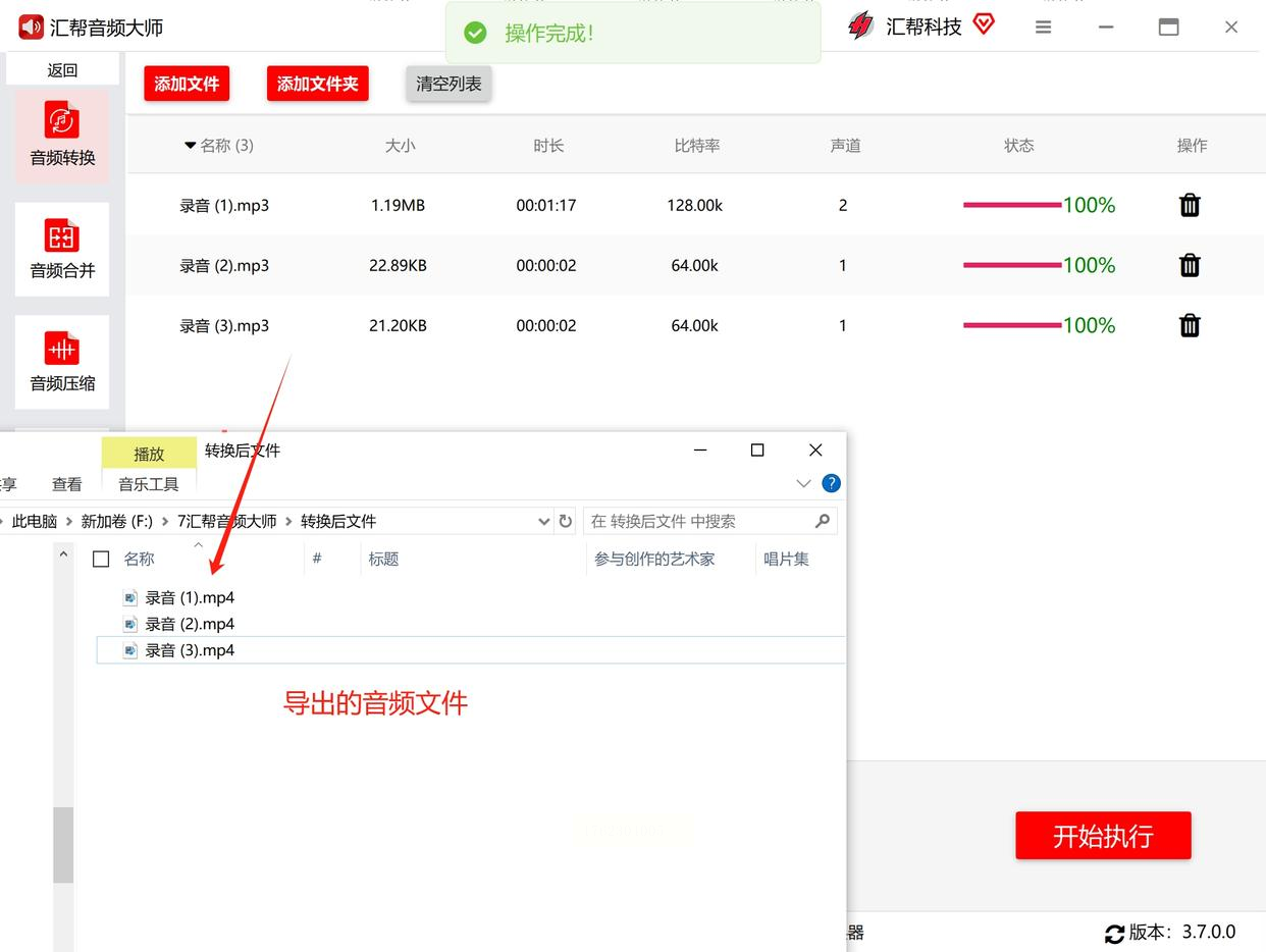 确认所有设置无误后,点击“开始执行”按钮。转换过程中可以观察进度条,了解剩余时间。完成后系统会有提示音,记得及时查看输出文件。