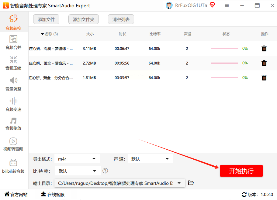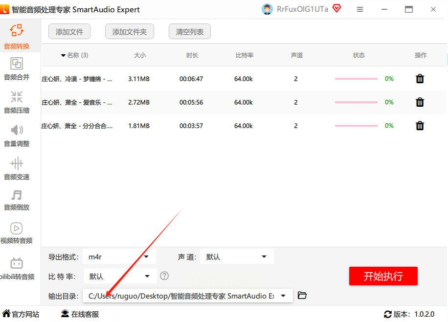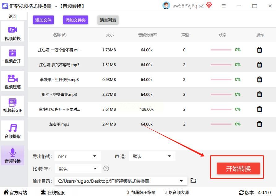点界面上的「开始转换」,等进度条走完就好。转换完成后软件会弹窗提示,直接去输出文件夹找.m4r文件。