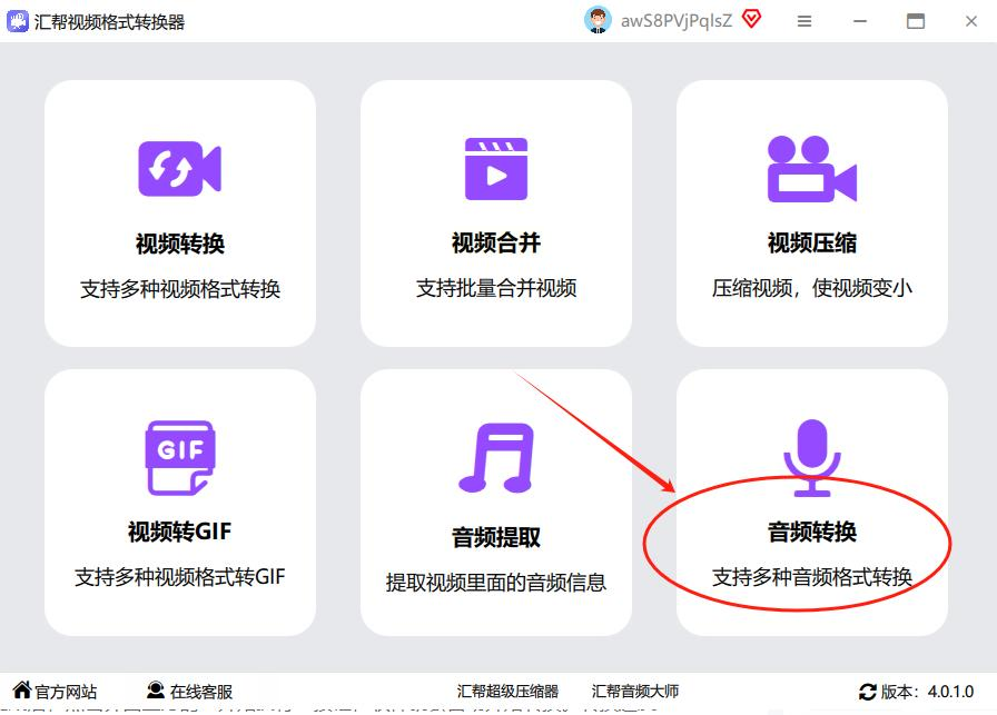 看到主界面后,找那个小音符形状的「音频转换」按钮(一般在左上角或正中间),点进去就对了。这个图标超显眼,新手也能一眼找到~