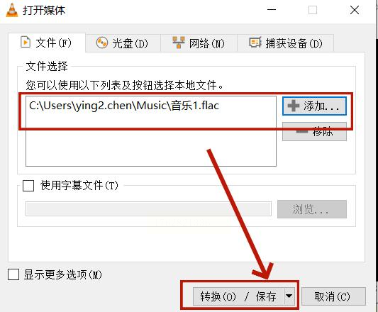 在弹出的窗口中,点击“添加”按钮,浏览并选中要转换的FLAC文件。如果有多个文件需要转换,可以继续添加。添加完成后点击“转换”。