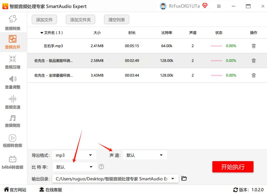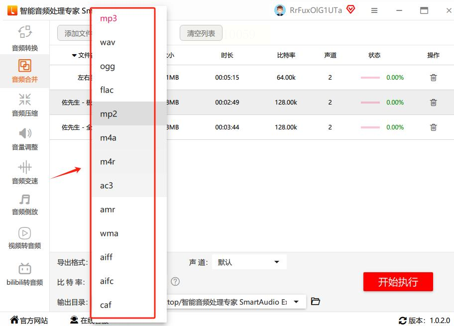 点击“开始执行”按钮,软件会开始处理音频文件。