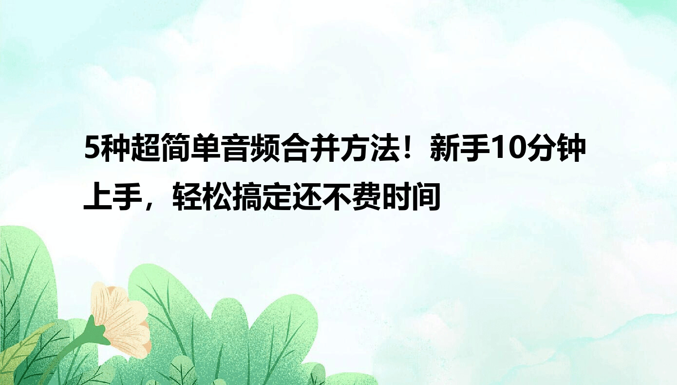 接下来,我们将介绍5种不同的音频合并方法,从简单易用的软件工具到需要一定编程基础的实现方式,让你根据自身需求选择最适合的方案。