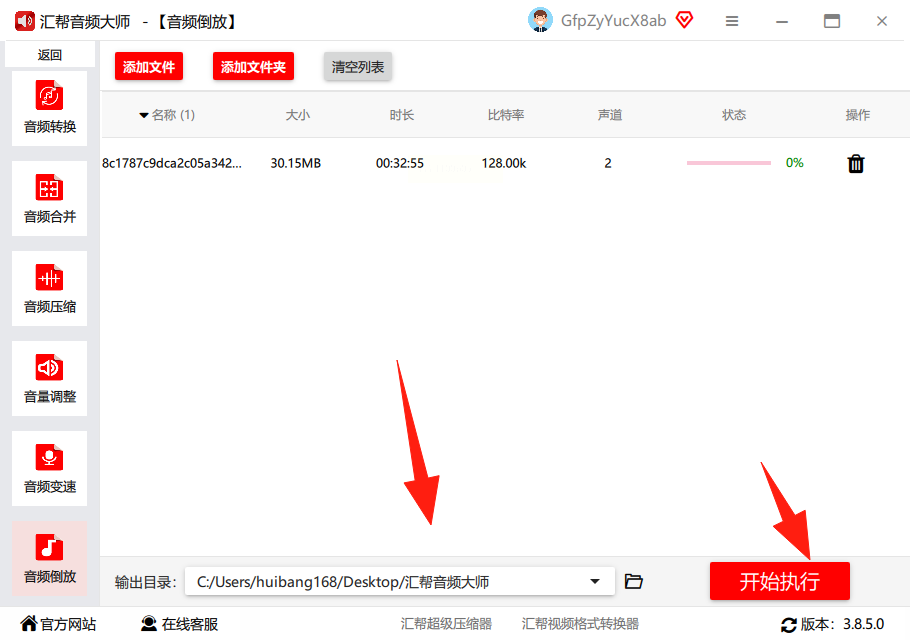 汇帮音频大师是一款操作简单的音频处理工具,倒放功能入口明显,适合新手快速上手,不管是普通音频还是录音倒放,都能一键搞定。以下是具体步骤: