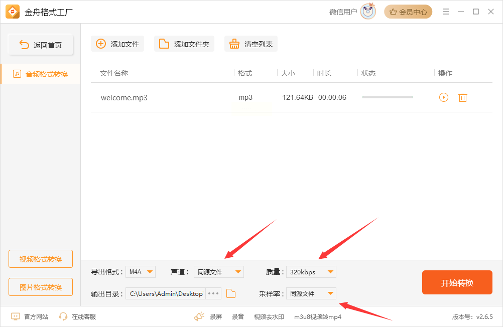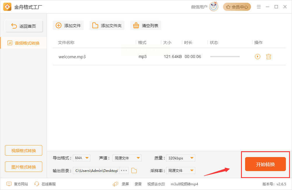 4. 点击“开始转换”前,还能预览文件时长和格式参数;