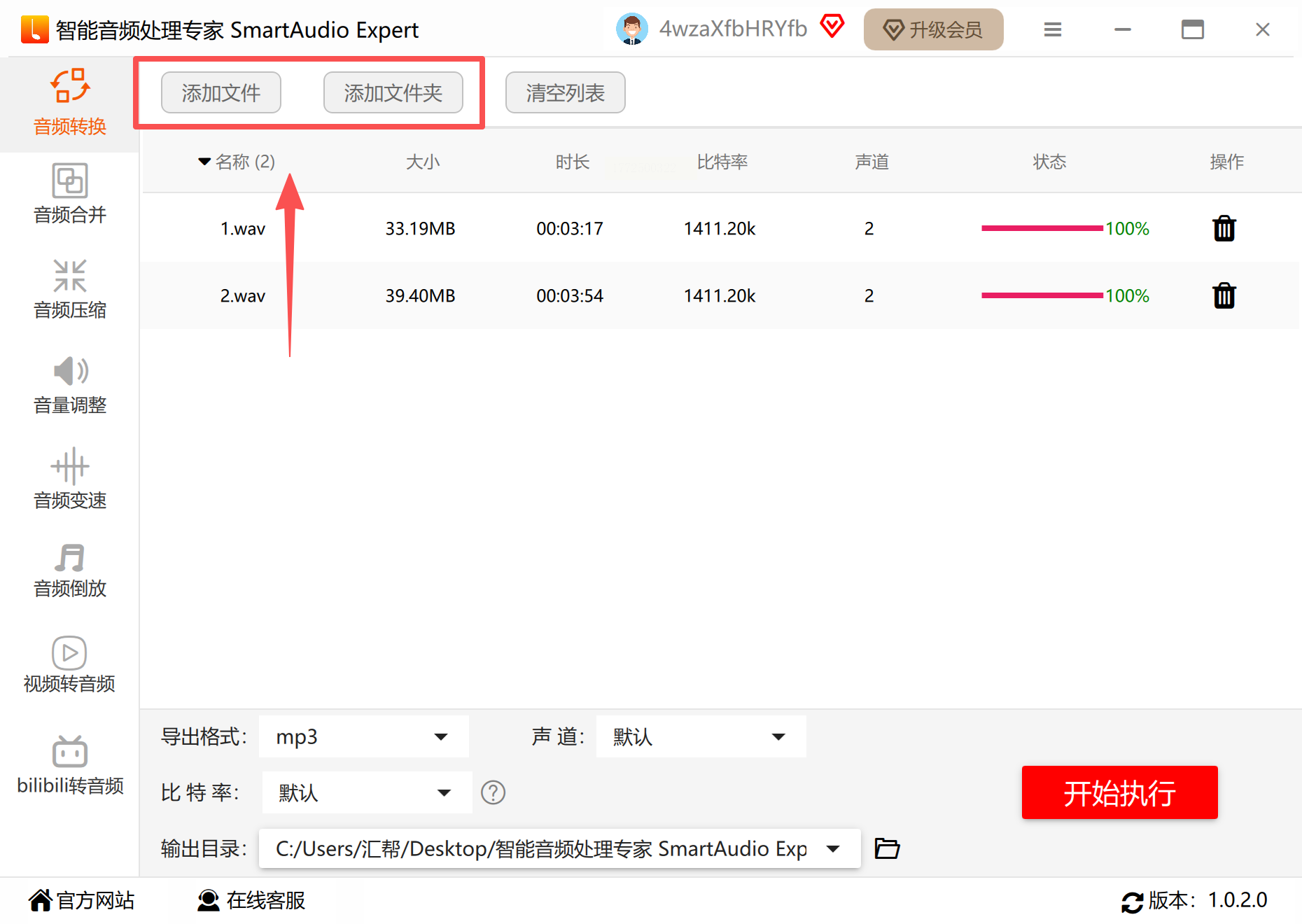 步骤二:点击中间的「添加文件」按钮,如果是单个录音文件,直接拖进去就行;要是几十上百个文件,用「添加文件夹」更方便,比逐个选省时间。