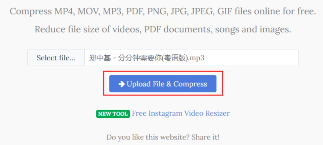 2. 点「选择文件」,从电脑里挑要压缩的音频(大文件建议连WiFi,省得传半天)。