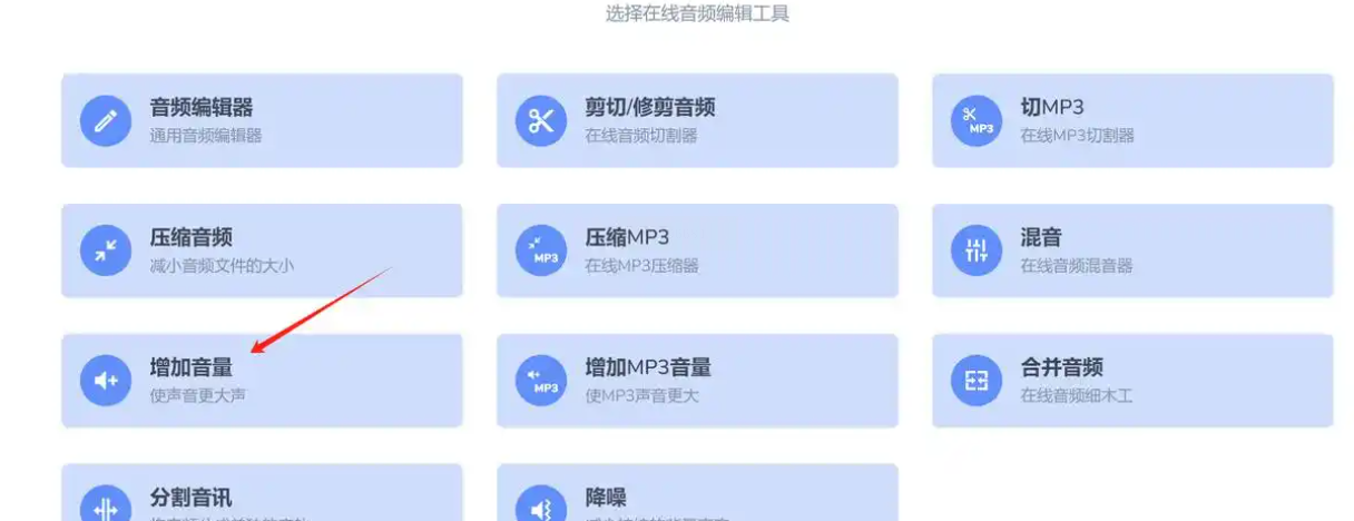 2. 在工具界面上找到“增加音量”这个选项,点击进入。