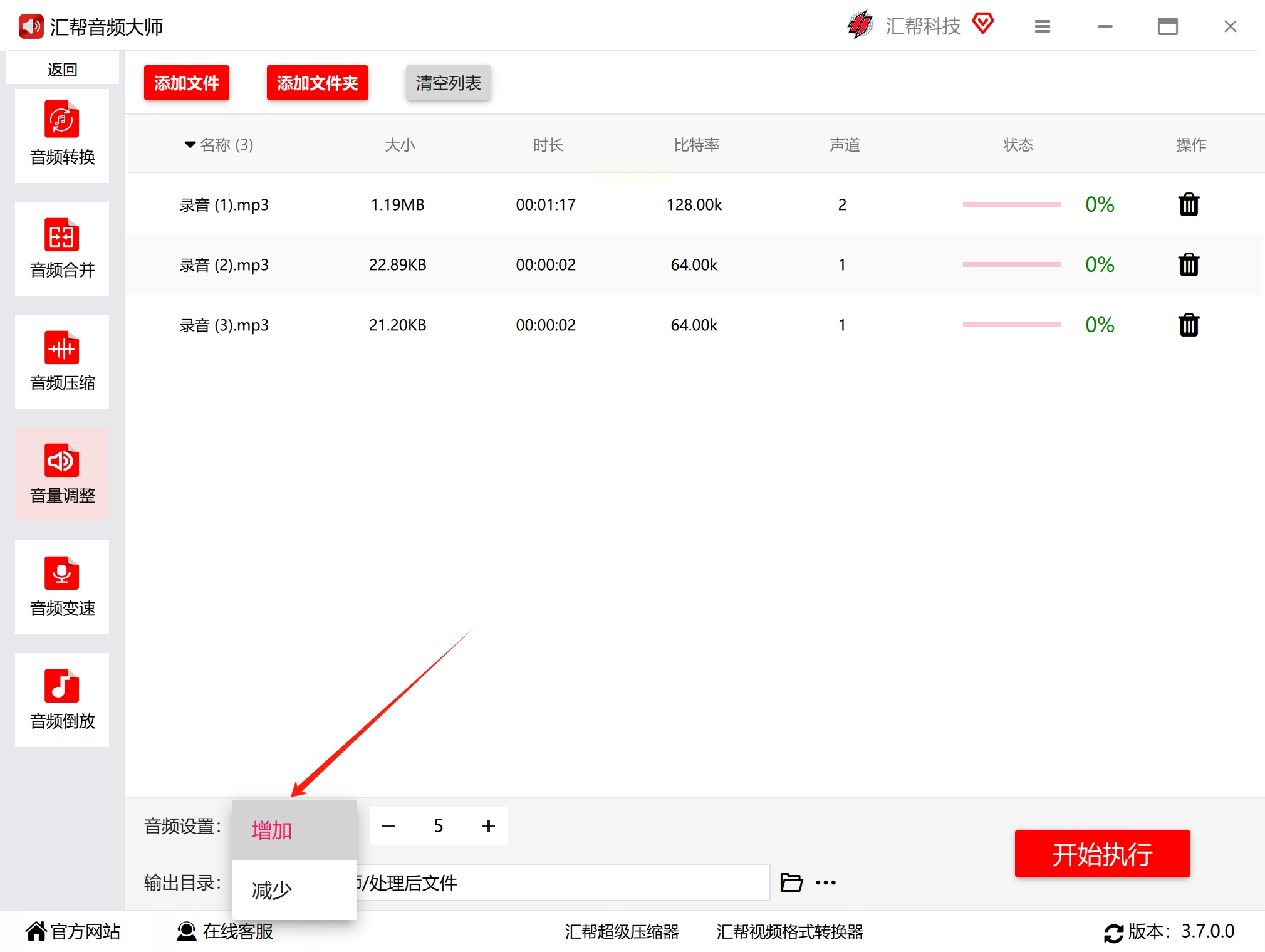 6. 点击“开始执行”按钮,软件就会自动处理你的音频文件了。