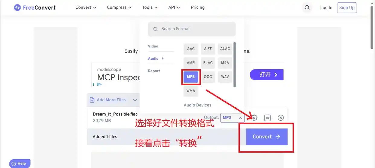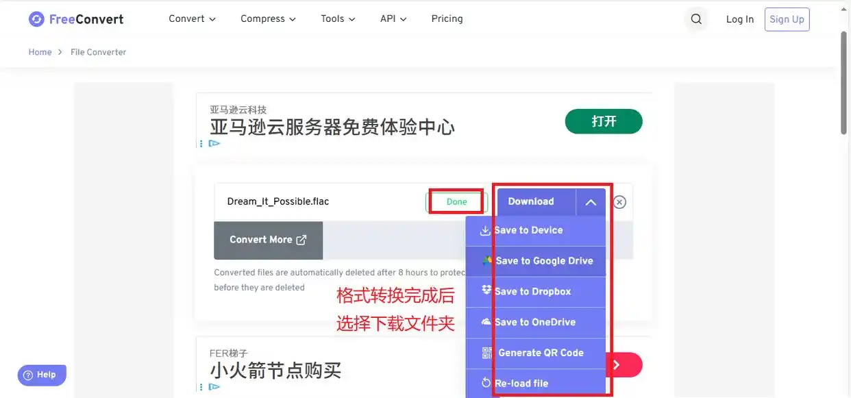 1. 上传文件:打开Free Convert官网(注意:选个稳定的在线平台),点击界面中央的上传区域,把FLAC文件传上去。
