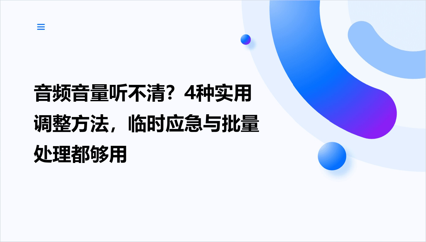 在日常影音娱乐、会议录音或播客制作中,音频音量调节是高频需求。有时音乐突然变弱、视频旁白听不清,或是录音文件需要统一音量标准,这些场景都需要精准的音量控制。很多人遇到音量问题就慌了神,其实掌握正确方法后,无论是在线工具还是专业软件,都能快速解决音量难题。接下来,我们从用户实际需求出发,拆解不同场景下的音量调节方案。
