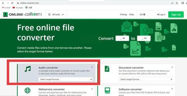 2. 选音频转换功能:首页最上面一排有“Audio converter”,点进去之后会看到各种音频格式的转换选项。