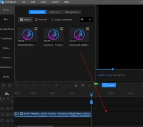 2. 添加到时间轴:在媒体库中找到刚才导入的音频文件,用鼠标按住它,直接拖到下方的时间轴轨道上。如果时间轴是空的,系统会自动创建一条音频轨道。