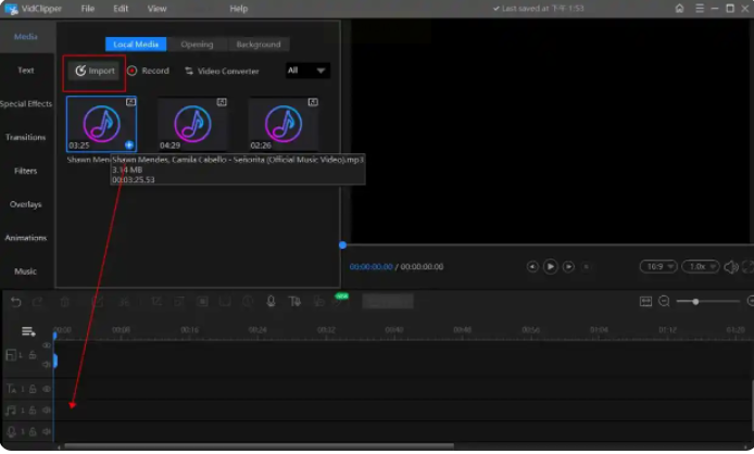 1. 导入音频文件:打开软件后,点击左上角的【Import】按钮,或者直接把音频文件拖到软件界面中间的空白区域。文件会自动出现在左侧的媒体库中。