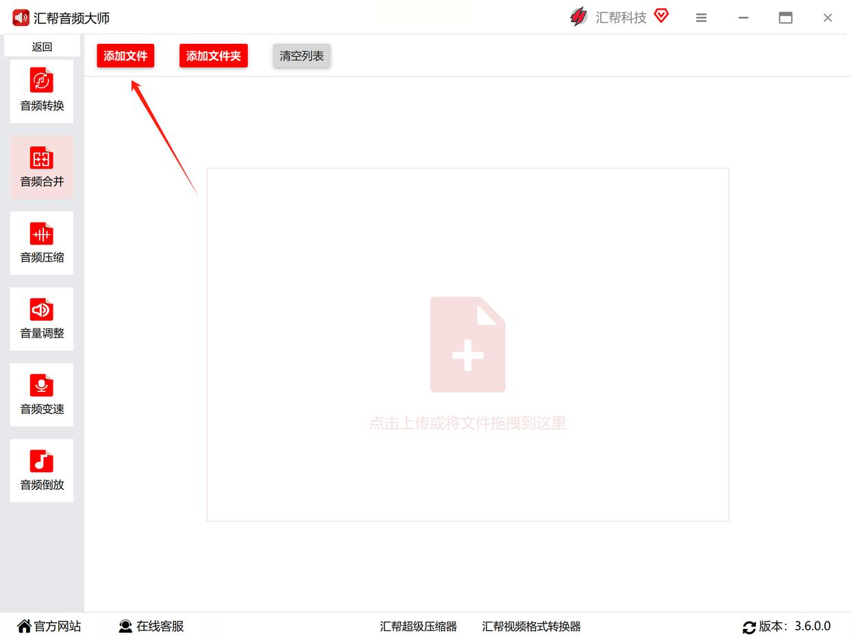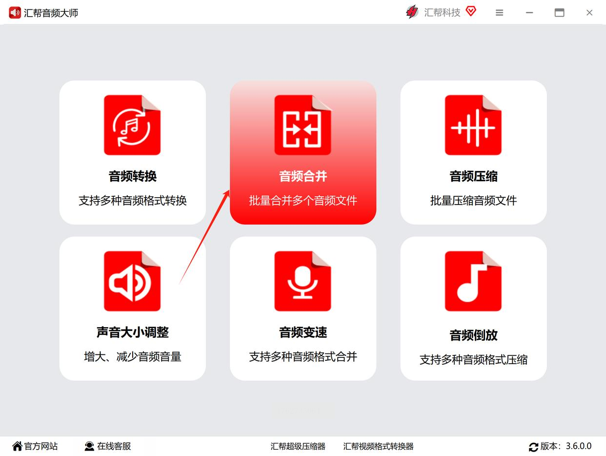 1. 选择合并功能:进入在线工具官网后,在功能列表里找到「音频合并」选项(有的平台可能在“音频转换”“音频处理”分类下),点击进入合并页面。