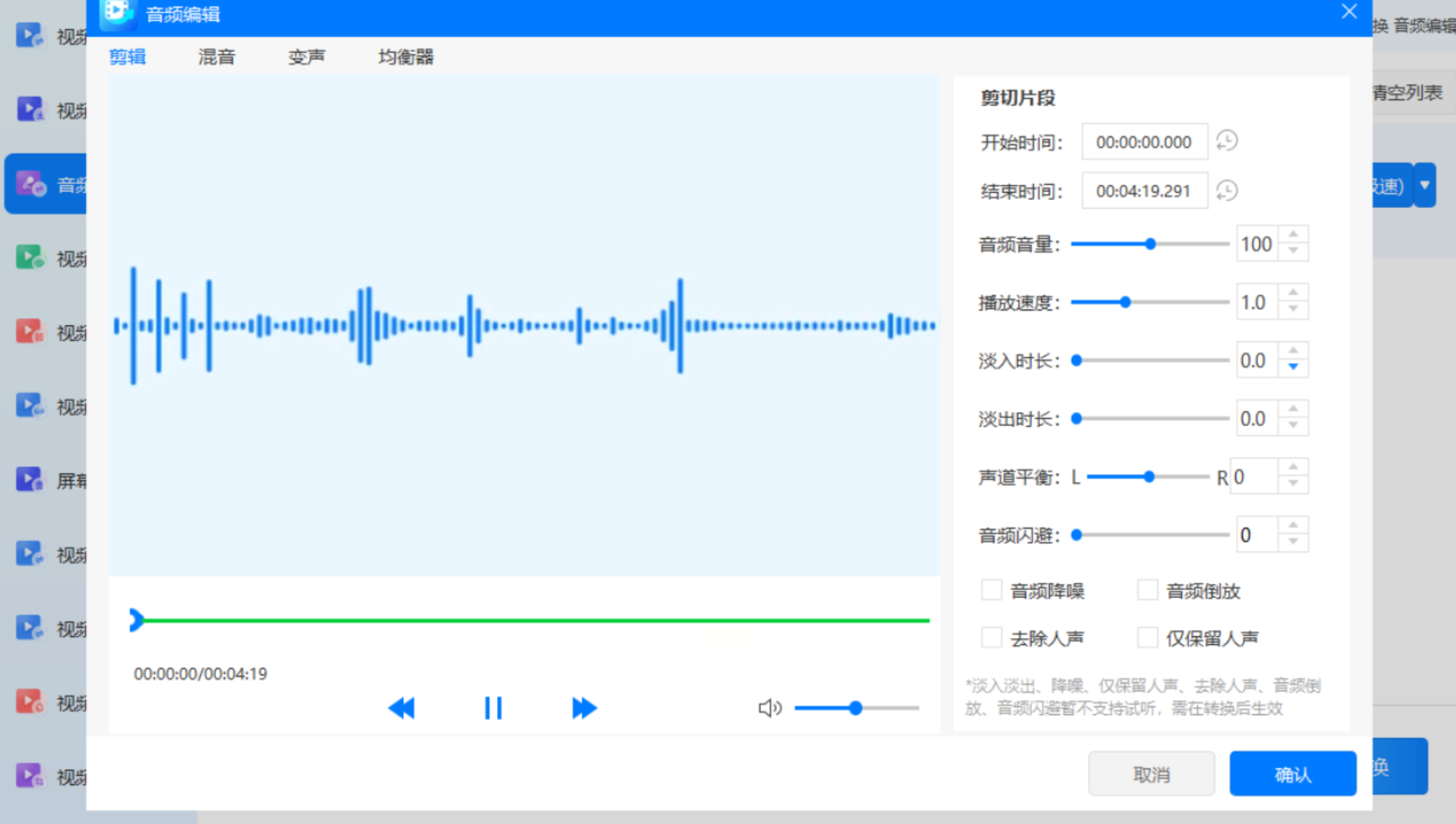 这款工具虽以“视频”命名,但其音频处理能力同样不容小觑。它提供了一个集成化的多媒体处理环境,特别适合那些偶尔需要处理音频,同时又可能涉及简单视频操作的用户。