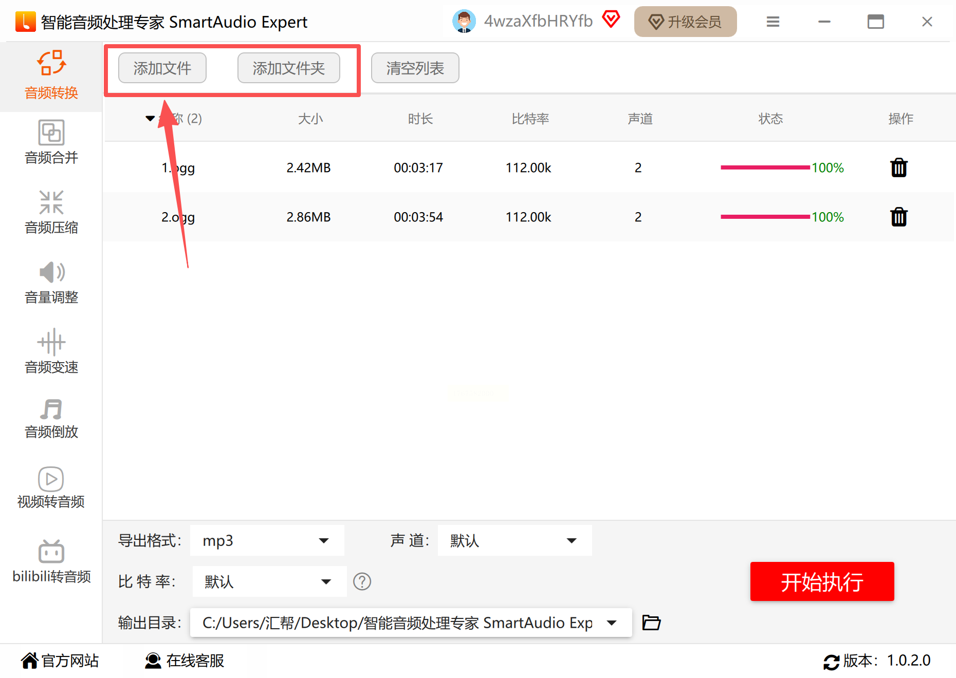 步骤一:运行SmartAudio Expert,在其主功能界面找到格式转换入口。通过“添加文件”或“添加文件夹”按钮,将您的OGG音频素材导入到软件的任务列表中。