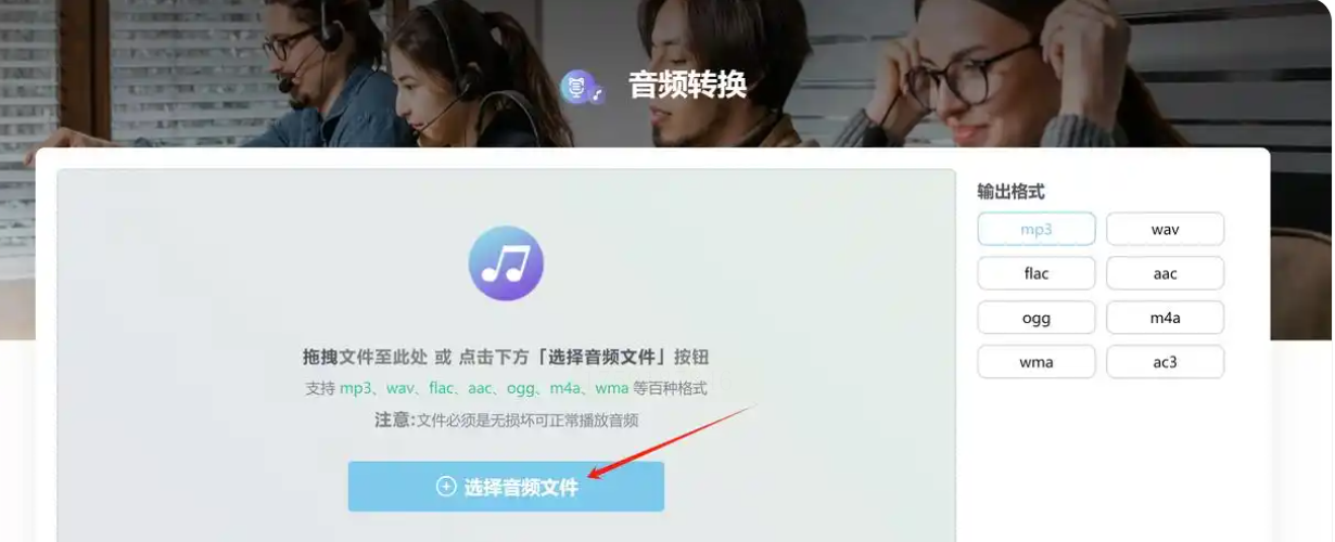 2. 进入页面,点击“选择文件”,上传你的MP3。
