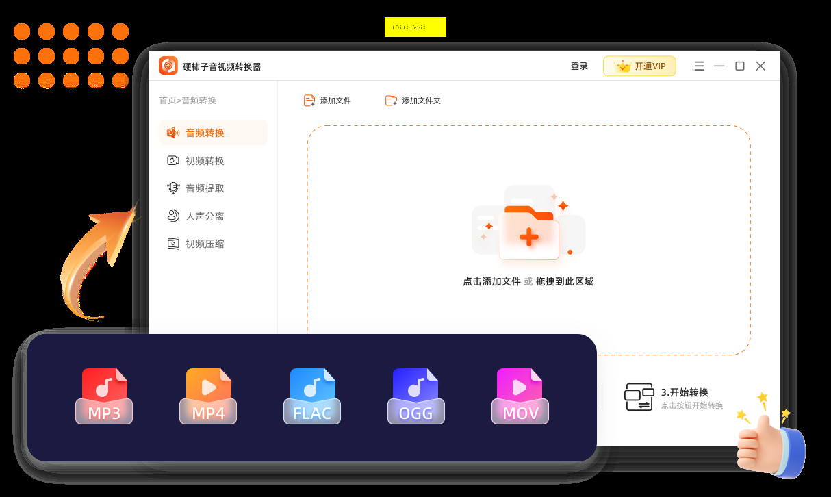 步骤1:下载并安装硬柿子音视频转换器,打开软件后,在主界面选择“音频转换”功能,进入转换界面。