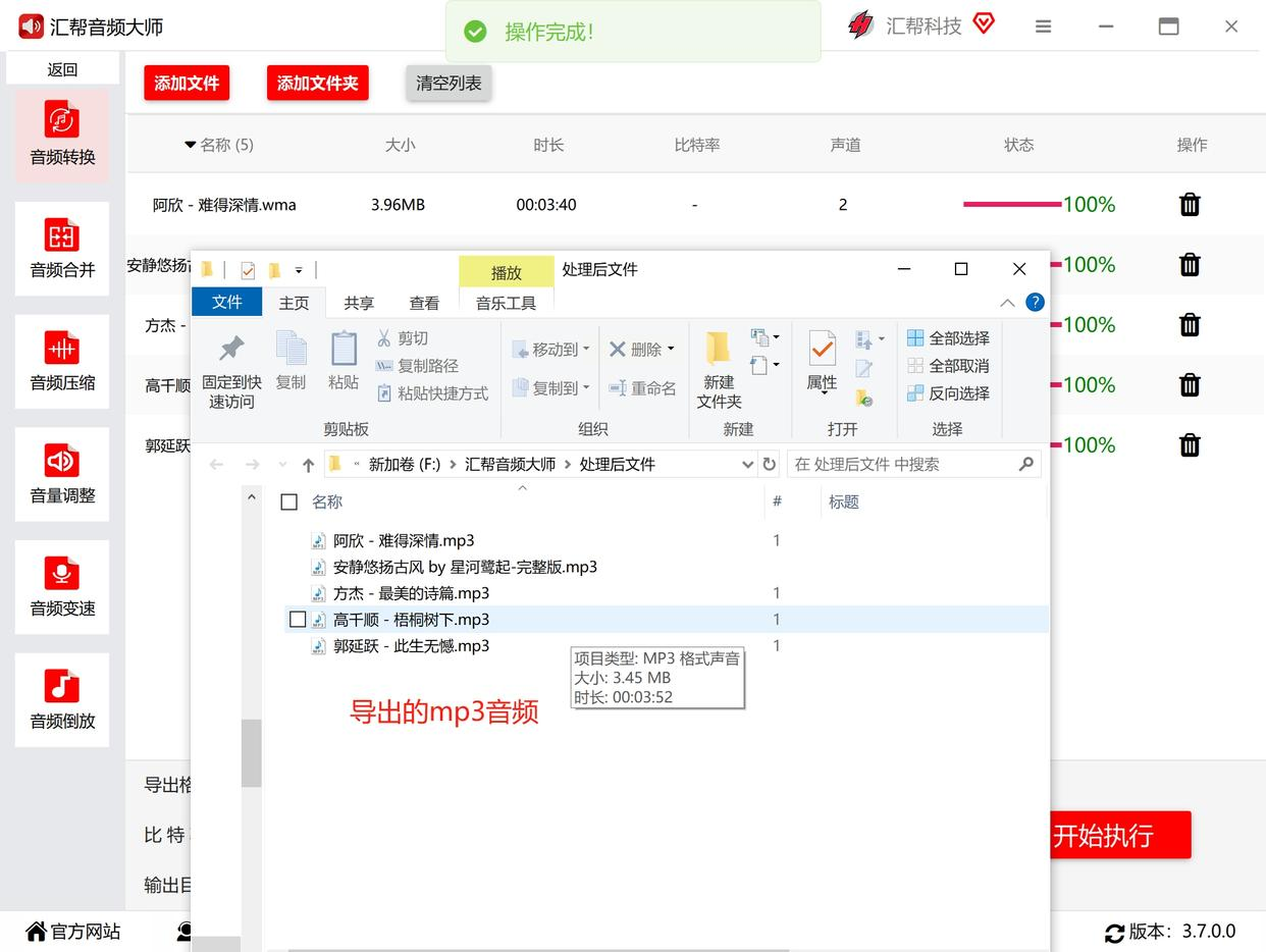 等转换完成,就能在指定文件夹找到MP3文件了。