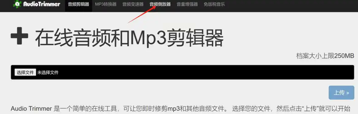 在网站首页,你会看到多个音频处理选项,找到并点击 【音频倒放】 或类似的功能入口进入操作页面。