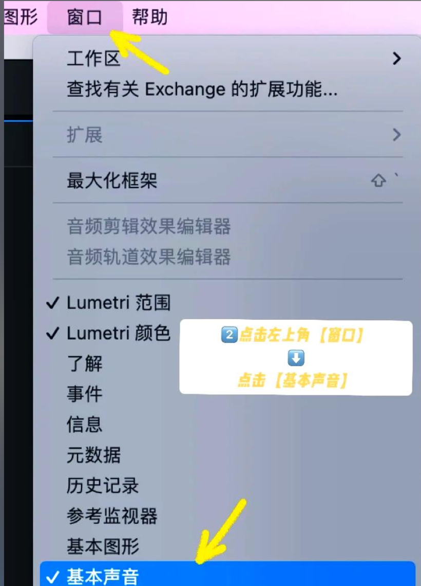 2. 召唤“调音神器”:点击Pr软件左上角的“窗口”菜单,在下拉列表中找到“基本声音”这一项并点击。这时,软件界面右侧通常会弹出一个新的工具面板,这就是我们的“调音神器”了。