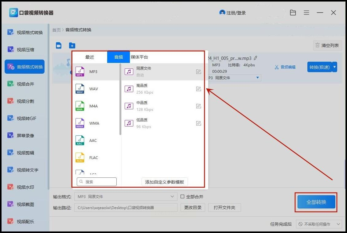 口袋视频转换器是一款轻量级软件,专注于音视频格式转换,界面简洁,操作便捷,适合快速处理单个或少量音频文件。